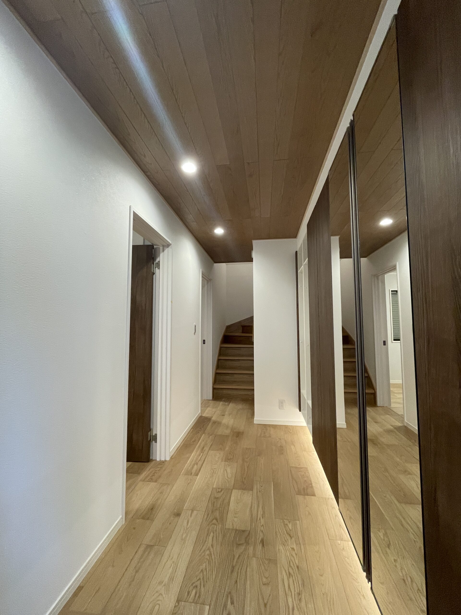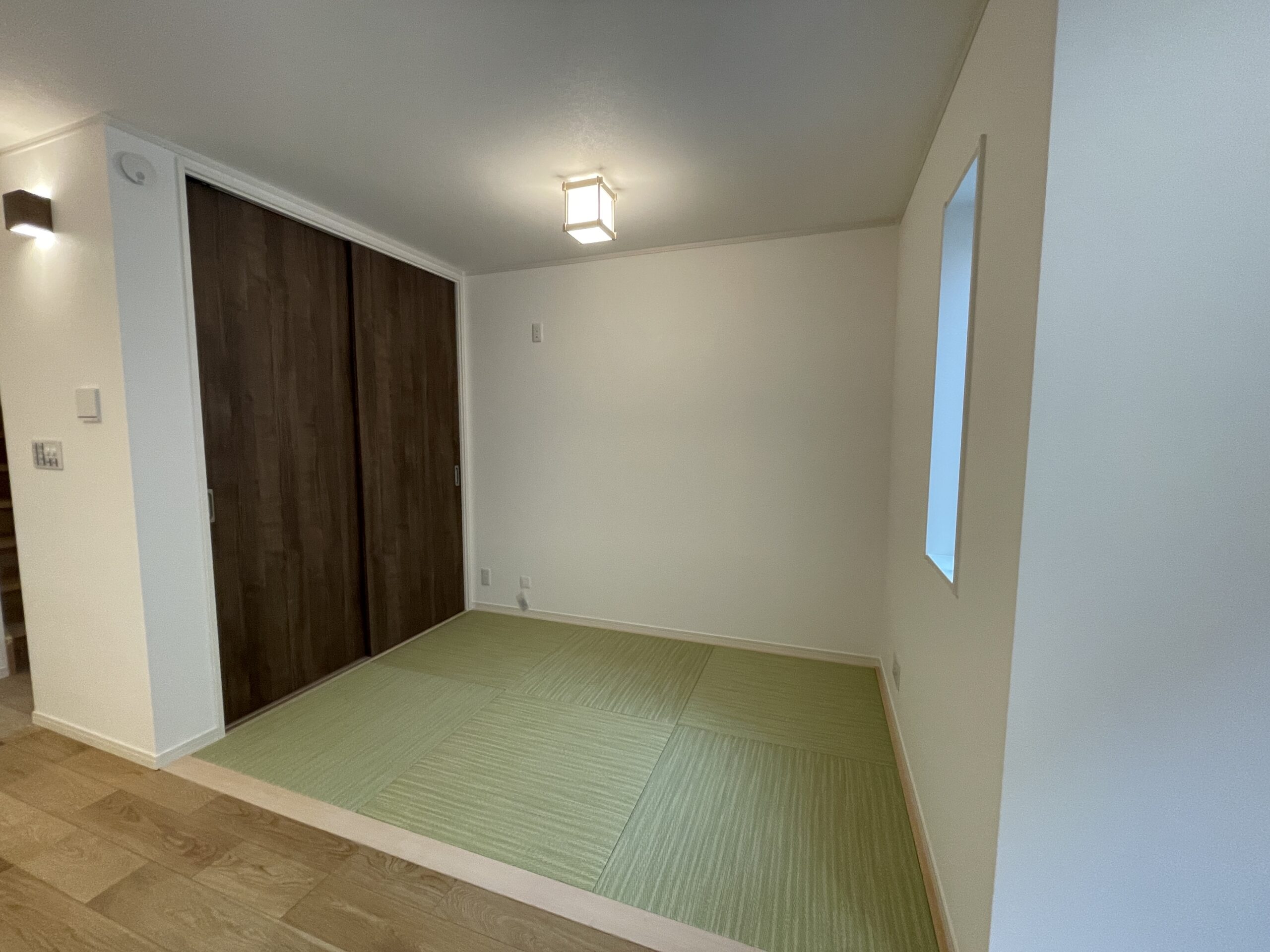 リビングは、間接照明を取り入れ明るく、あえて地続きにしてある畳の和室空間も心癒されます。